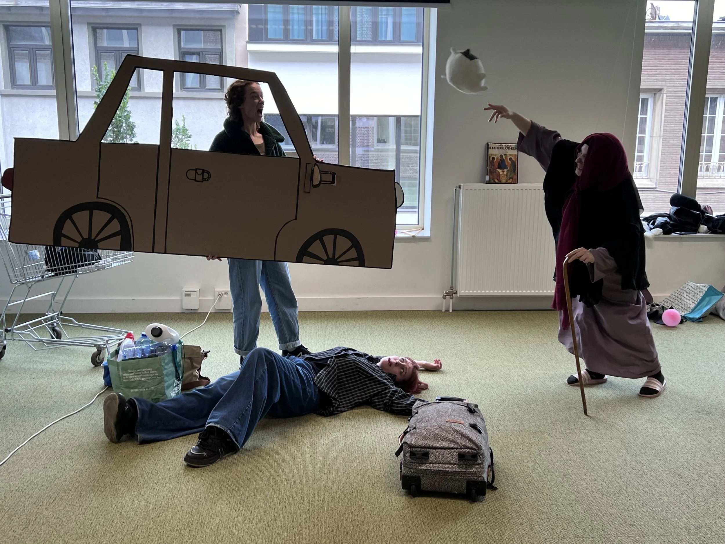 You can see me ‘in the car‘, Laura as a wounded victim on the ground and Azra as a passer-by with a kitten.