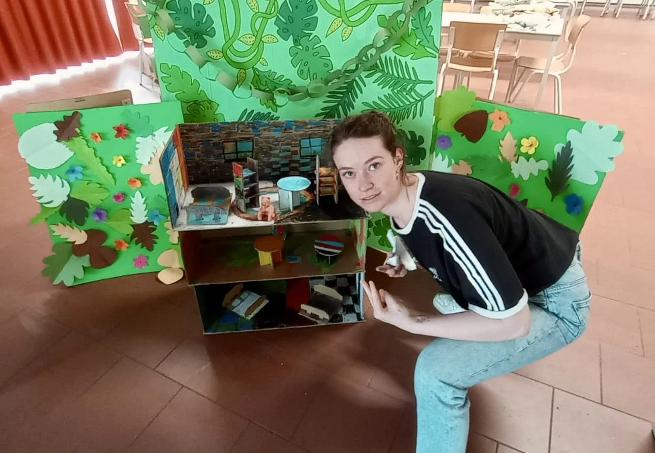 We naturally built our workshop around this theme! During our first workshop, we created all kinds of decorations for their country: a house with furniture, leaves, vines, and flowers. The students were divided into 3 big groups and taught by Abel, Maarten and myself. We followed a step-by-step plan and later assembled everything during our free time so it would be ready to present in our second workshop.
